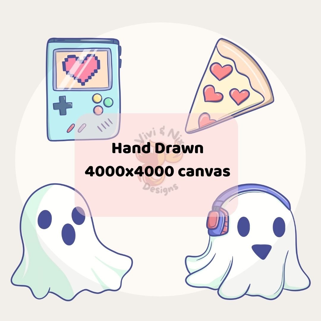 Cozy Gamer Clipart Set | Hand Drawn Gaming PNGs with Ghosts & Hearts