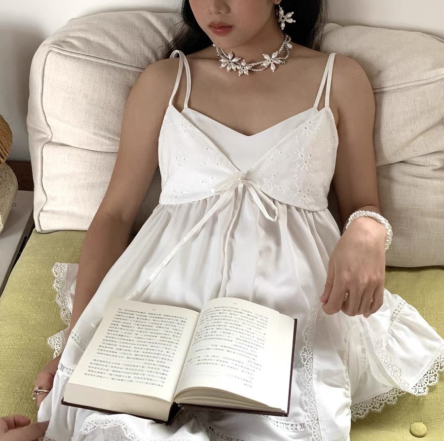 "White Rose" handmade pearl flower French beaded necklace