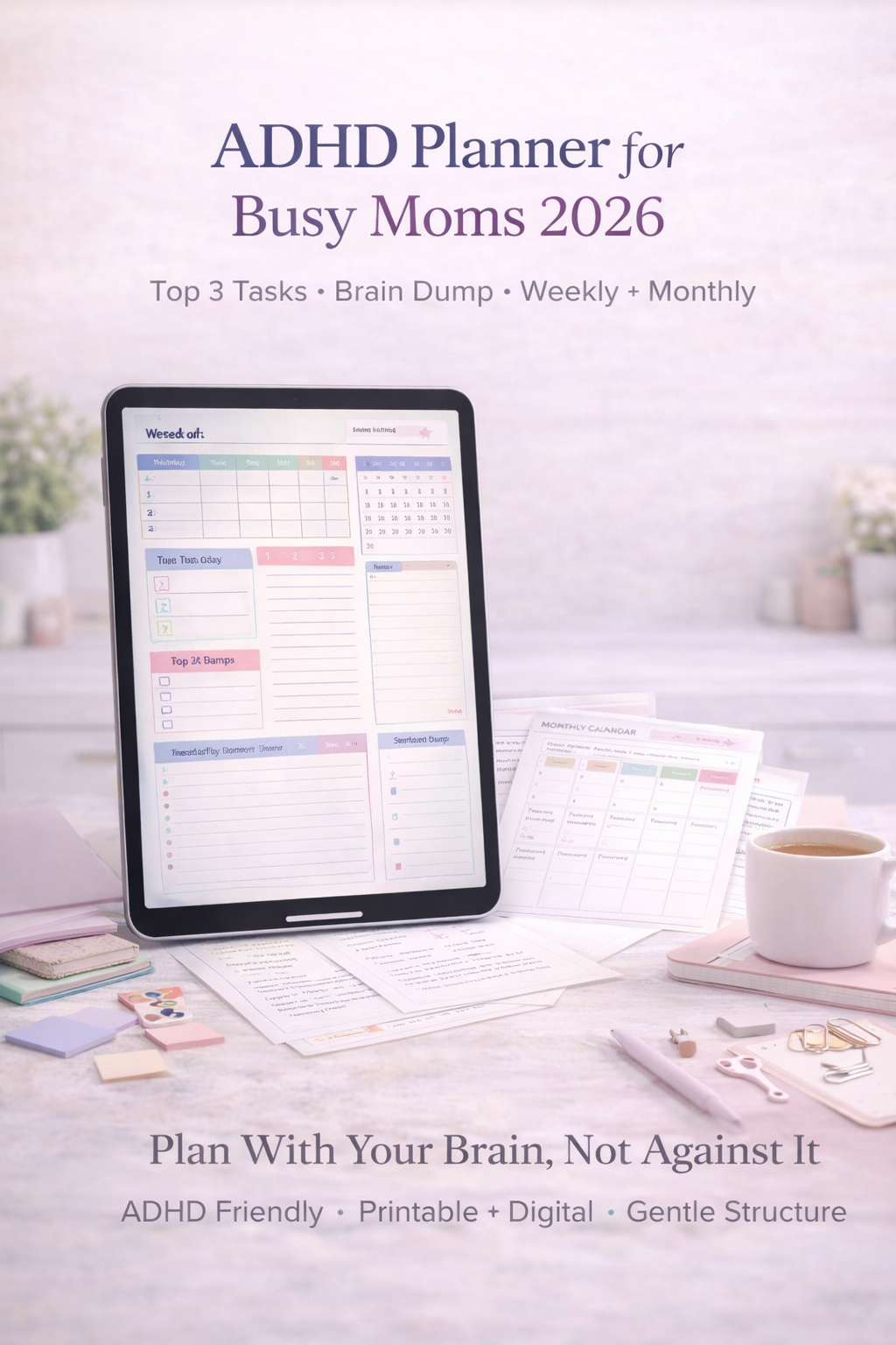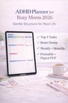 ADHD Planner for Busy Moms 2026 | Printable & Digital PDF, Weekly & Monthly Organizer, Brain Dump & Top 3 Tasks
