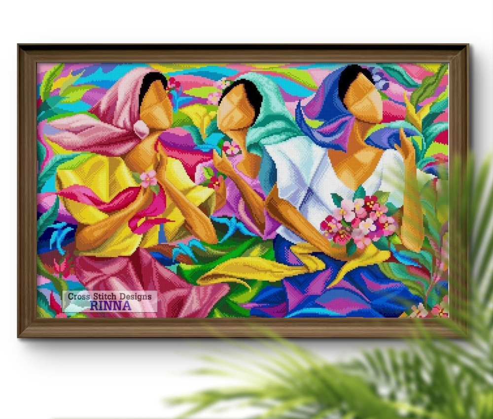 Filipino Art -Dancing Marias -Cross Stitch PDF Pattern Downloadable Digital File