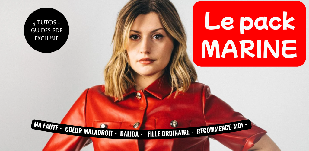 Plus besoin de choisir ! Avec le pack "Marine", tu as enfin accès à TOUS les tutos et TOUS les guides PDF exclusifs de Yoann Cammino concernant les chansons de Marine. A chaque fois, tu retrouves la vidéo téléchargeable du tuto pour pouvoir commencer à jouer maintenant !
