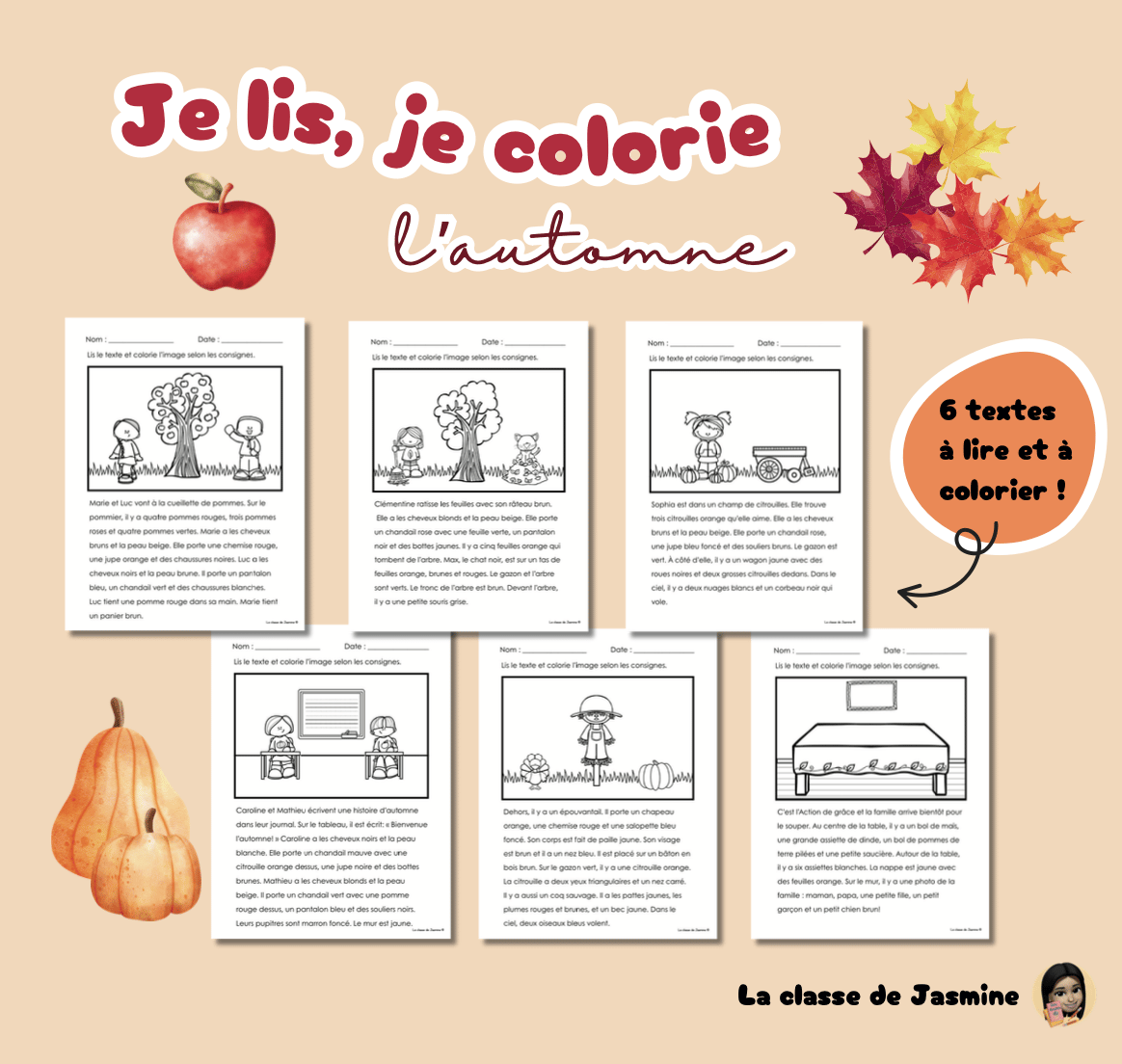 6 textes à lire et colorier. Les élèves lisent chaque texte puis dessinent ce qu’ils ont compris, parfait pour travailler la compréhension en lecture de manière interactive.