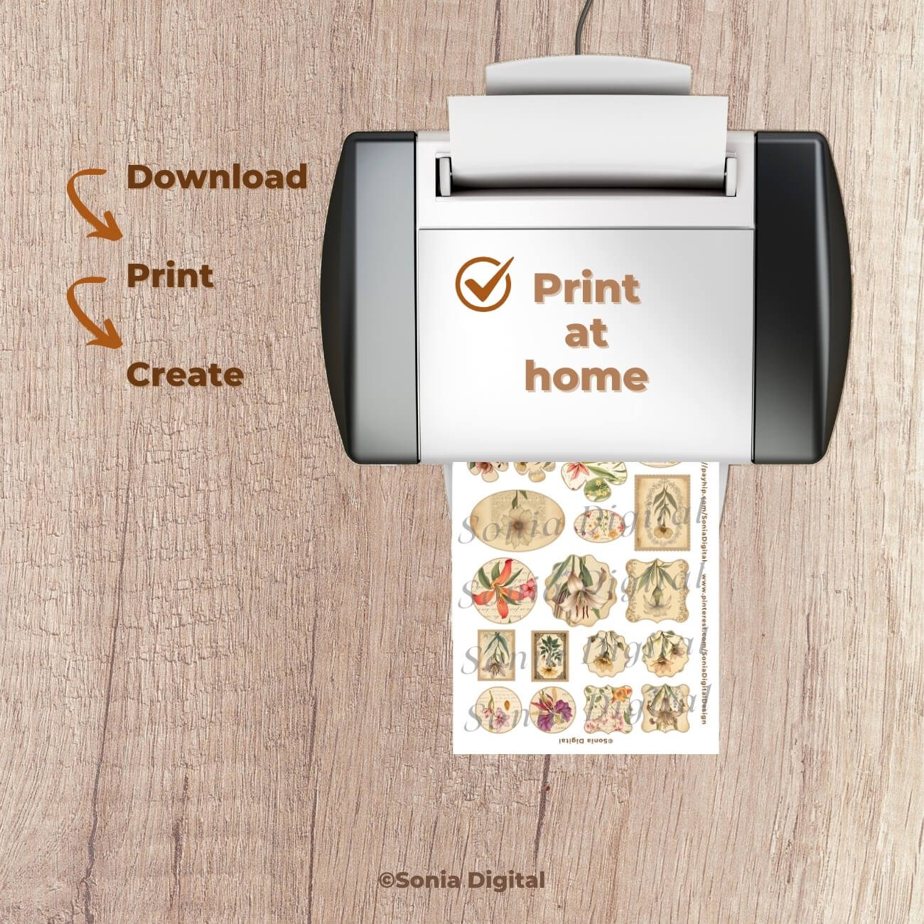 4 printable pages, containing Tags-Labels-Tickets & Shapes, “Retro Botanical” Collection, for Scrapbooking and Junk Journal creations. Letter size (8.5”x11”). Commercial use license included*