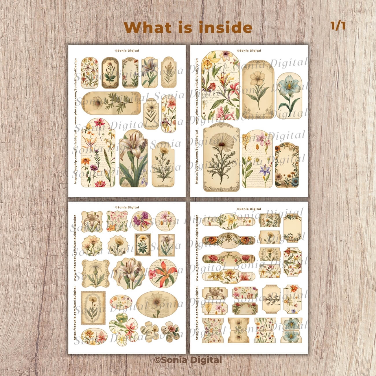 “Retro Botanical” Tags-Labels-Tickets-Shapes, Scrapbooking & Art Journaling creations.