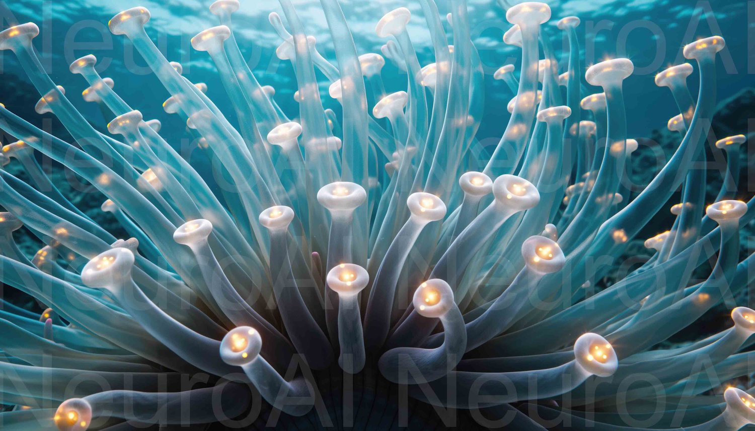 Glowing sea anemone tentacles underwater beauty