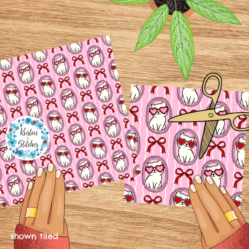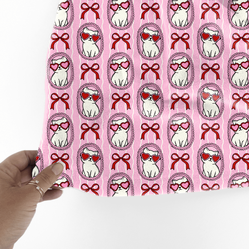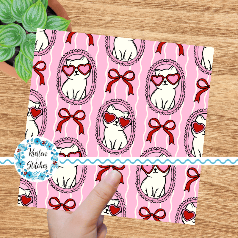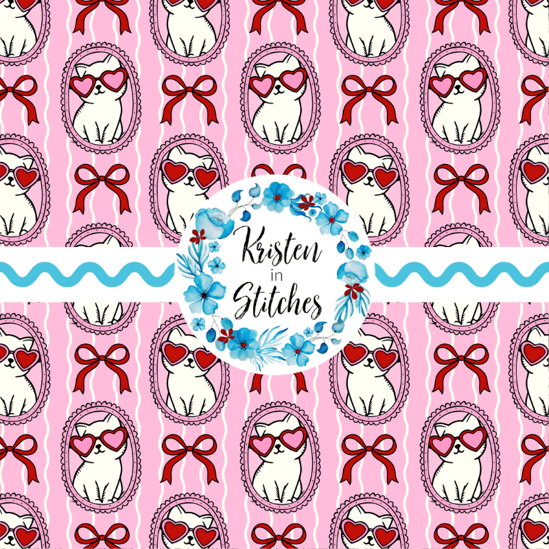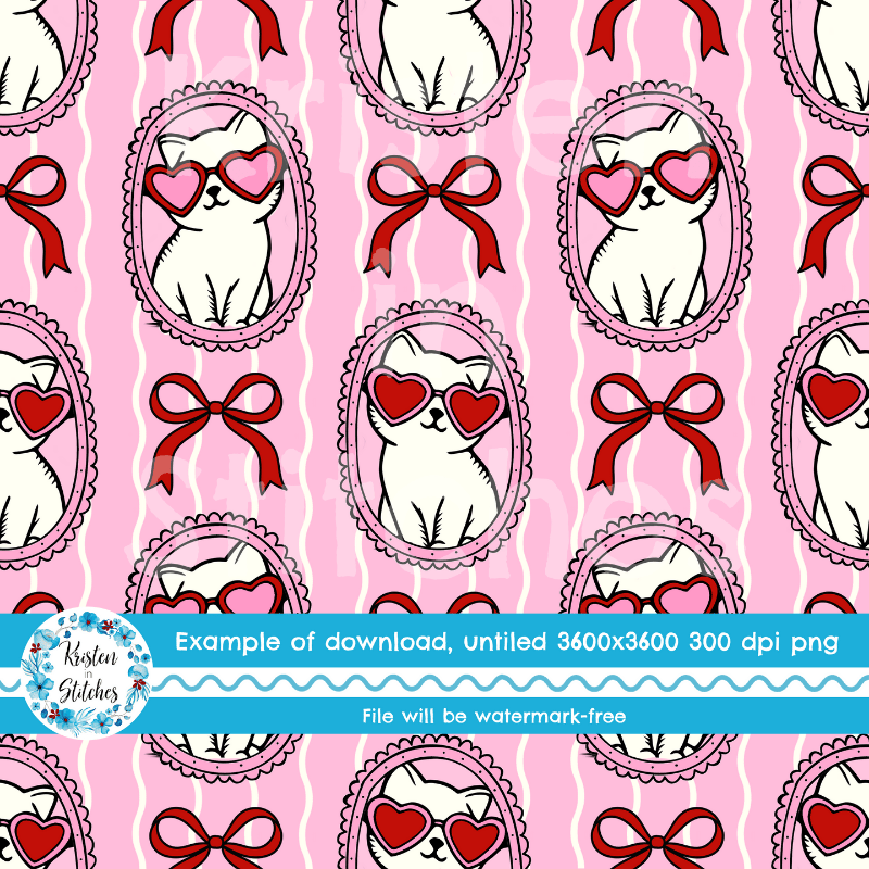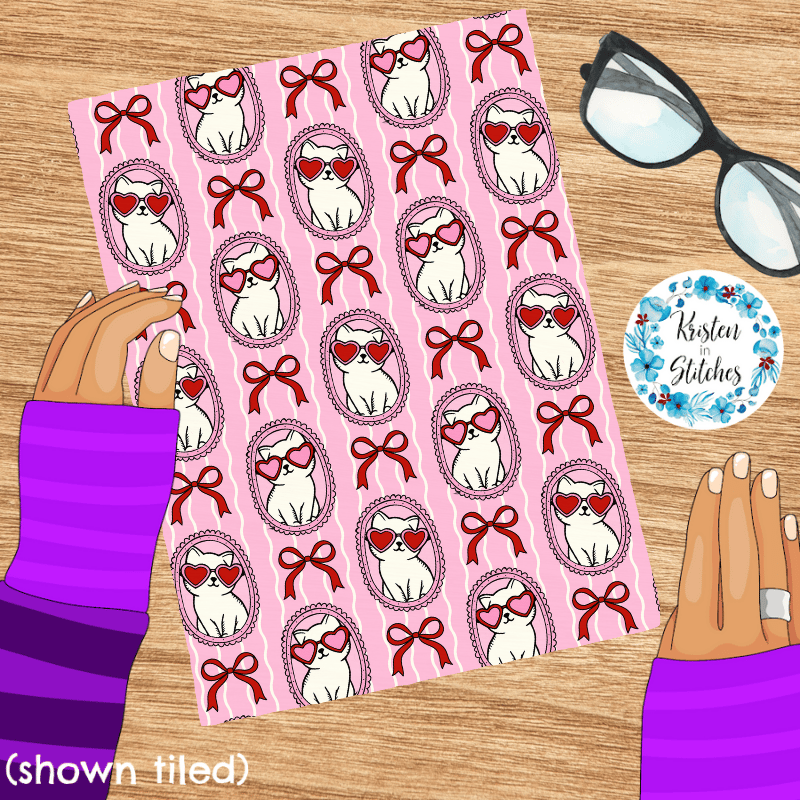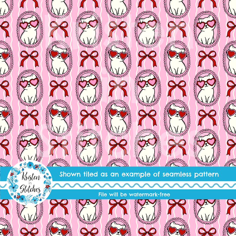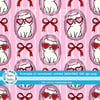 Valentine Cats in Picture Frames Seamless Pattern, Coquette Bows, Pink