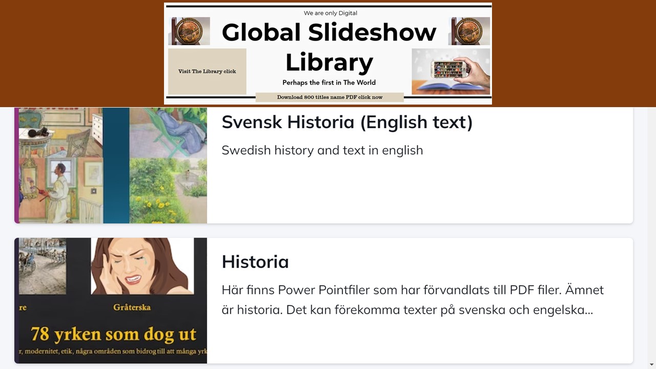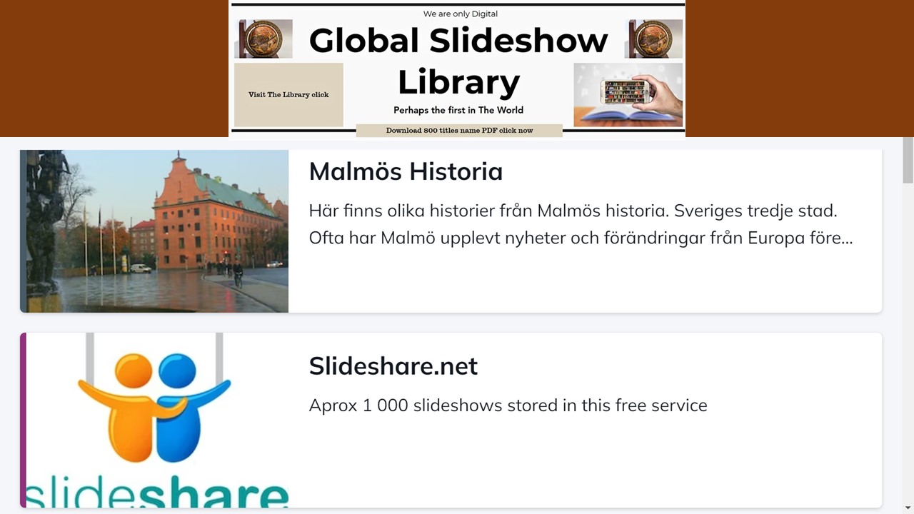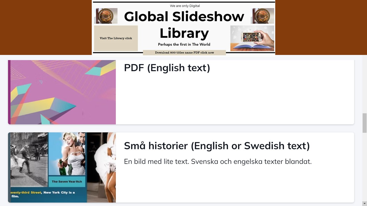 Tidigare namn "World of slideshow" har växlat till nytt namn Global Slideshow Library.