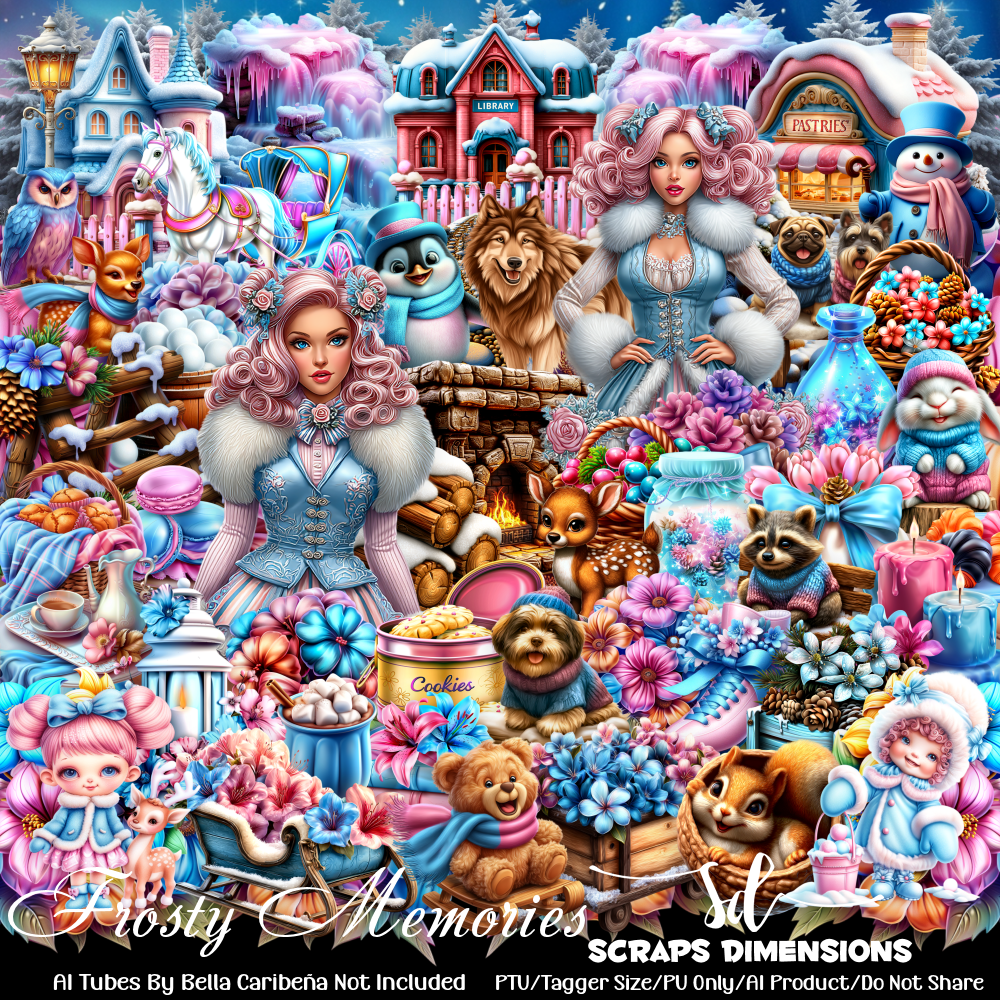 This kit contains 75 fabulous elements and 12 backgrounds. All elements in this kit are AI generated by Scraps Dimensions. Matching AI tubes by Bella Caribeña are not included. Tagger size. Perfect for your tags and projects. Personal use only. Enjoy!