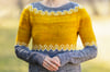 This pullover is a fun project for leftover skeins in your stash. It is worked from topdown with a circular colorwork yoke. Short row shaping is done to shape the neck. Sleeves are shaped with decreases and there is no body shaping, although it can be easily adapted. Choose the nicest colors you have in your stash.