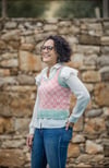 “Malva” means mallow flower, and this vest is inspired by those small flowers with heart shaped petals. It features a lace hem with a leaves shaped stitch that adds beauty and lightness to the garment. Imagine wearing it in those early spring days when small flowers begin to blossom, can you smell the fresh grass?