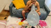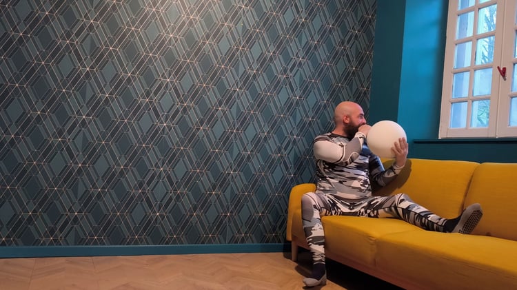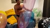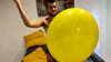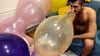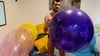 He try a second Blow to pop but finaly he decide to pop the balloon with a knife.