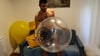 Nelson start with a Blow to pop of a belbal 14" balloon. Afert that he burst giant balloons with his hands or a kinfe.