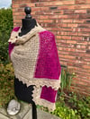 First published as a 4-part knitalong in The Knitter magazine in 2023, Barragán is a dramatic lace wrap in two colours.