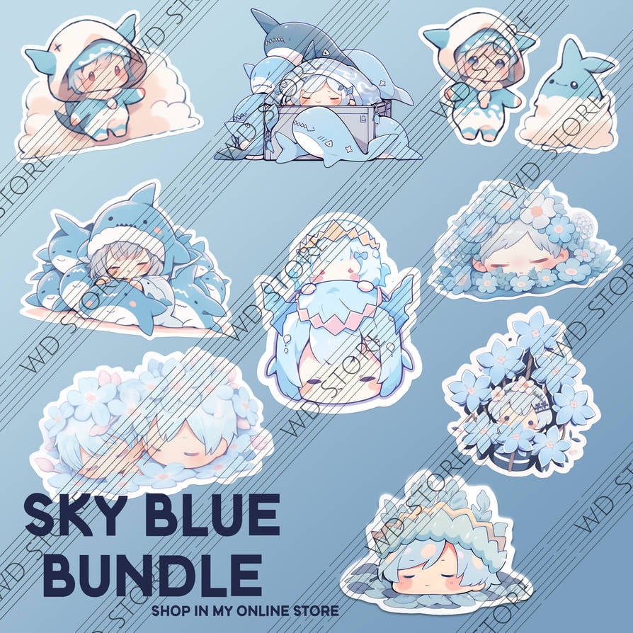 Sky Blue Stickers Blundle - 9 Stickers