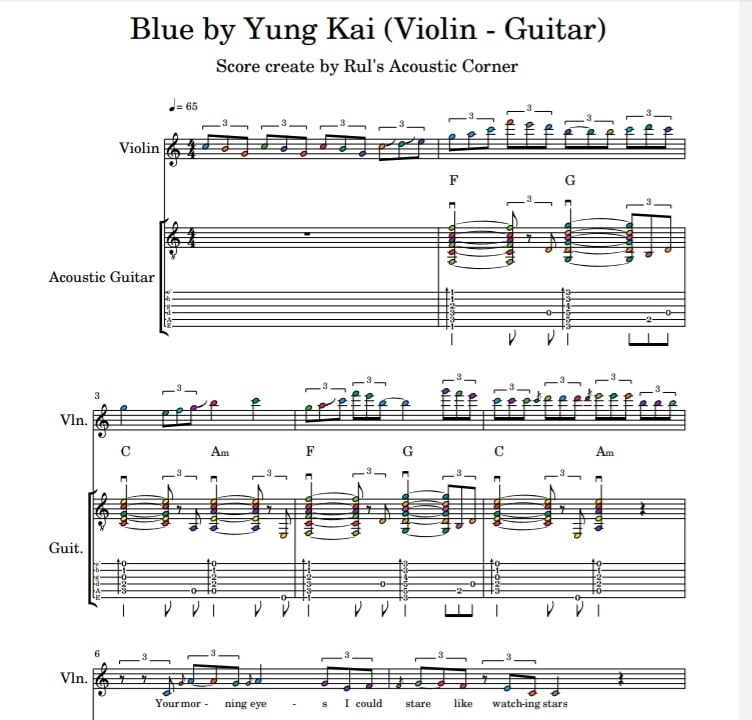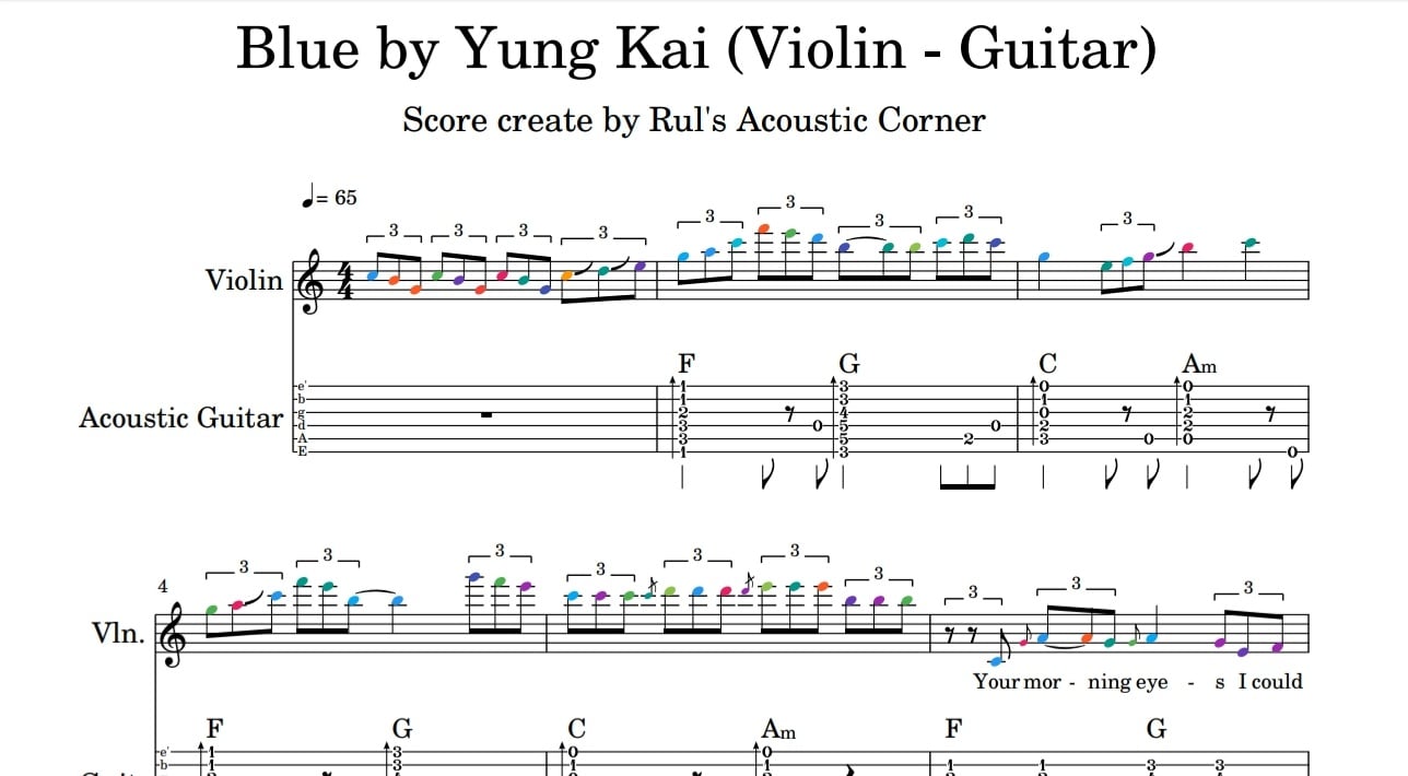 Tutorial Sampel Lesson Instrumental Blue - Yung Kai Violin Guitar Musical Notes Tabs High Quality PDF Video