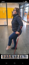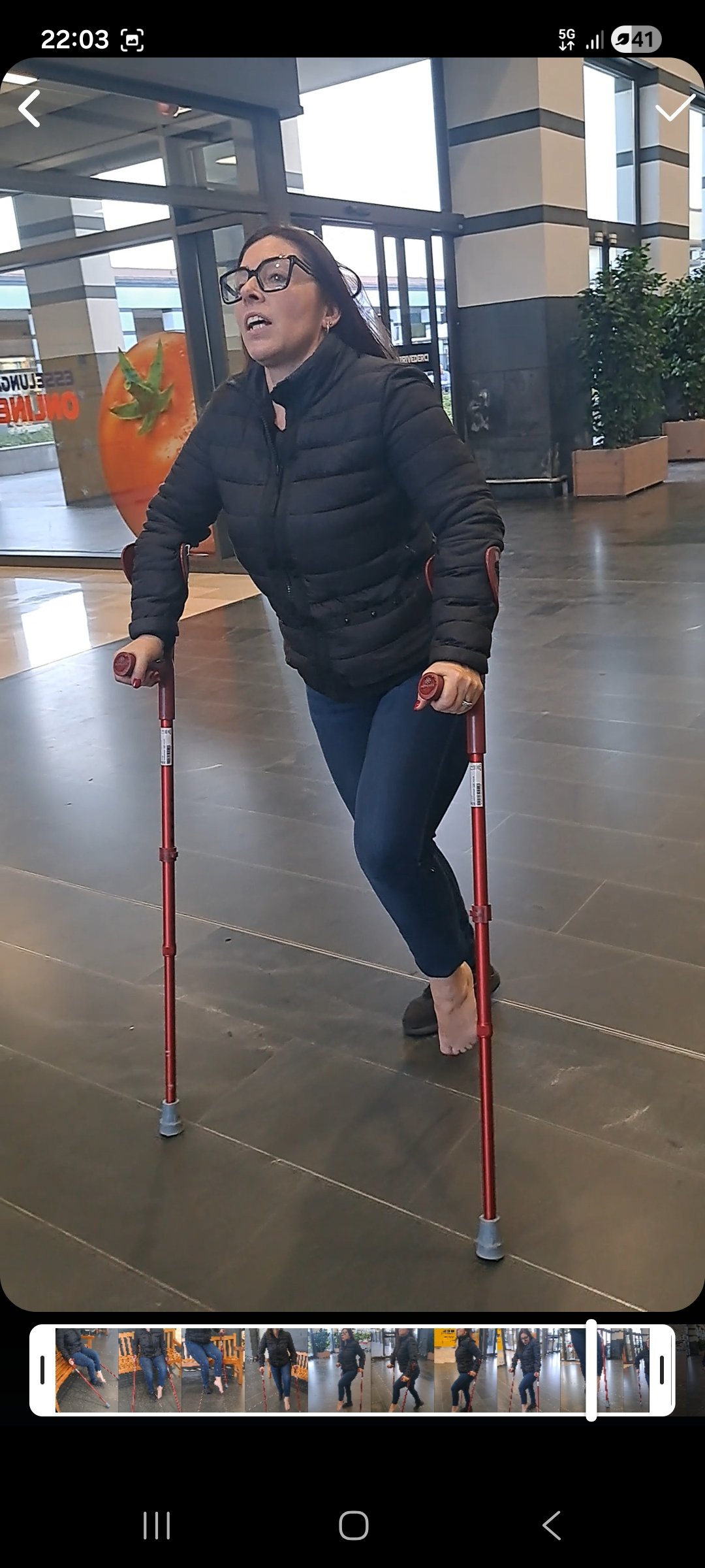 Outdoor barefoor pointed foot and crutches-2 minutes