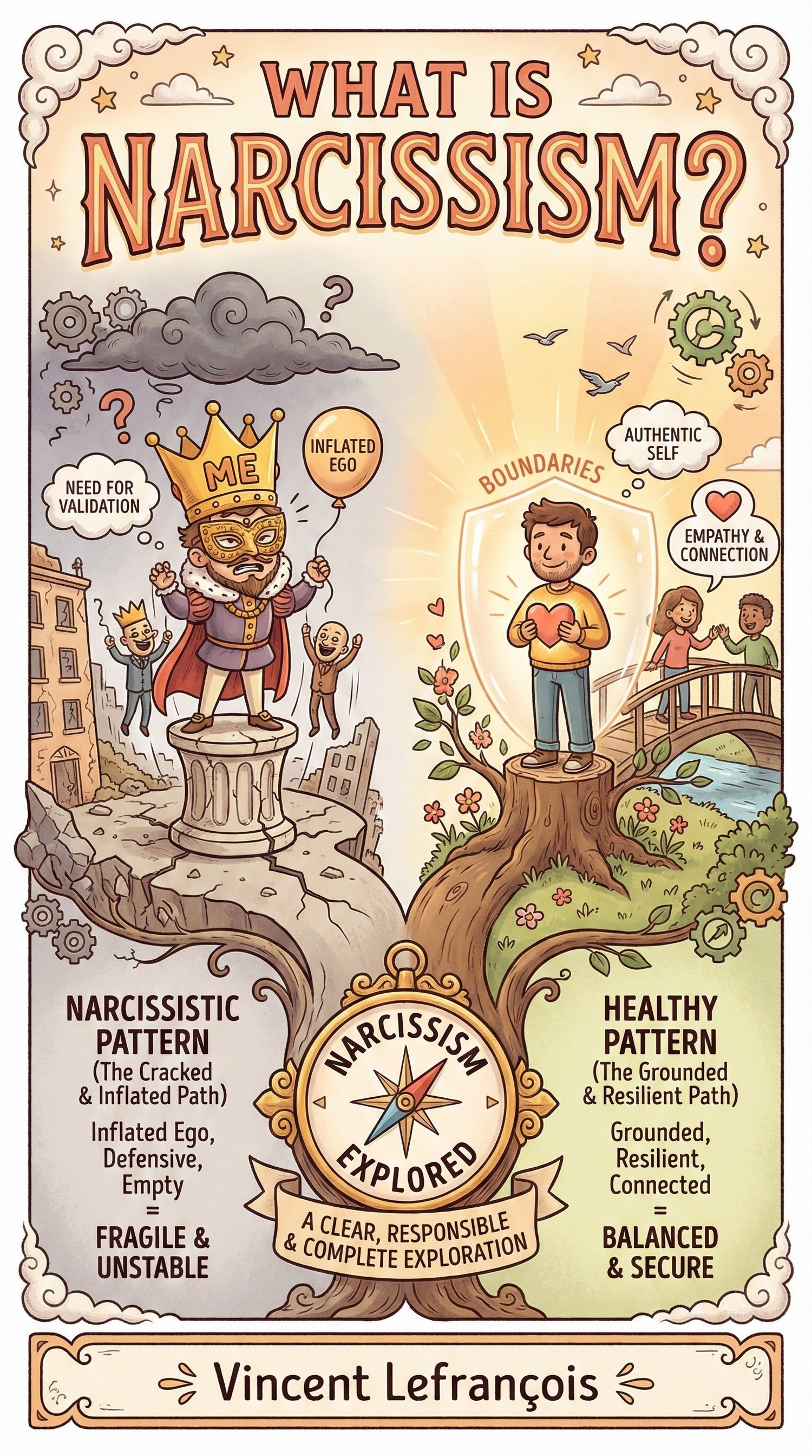 Through more than 90 carefully structured questions, clear explanations, and visual storytelling, this book helps you understand narcissism as a human trait — from healthy self-love to pathological patterns.