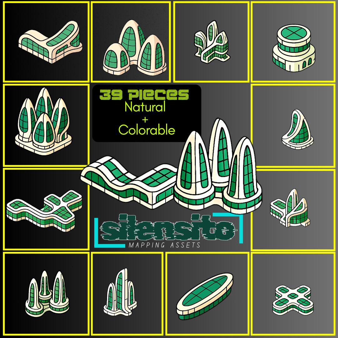 - 39 pieces of individual buildings, from clustered towers to flowing civic halls.