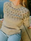 [this is a DIGITAL PDF FILE OF A KNITTING PATTERN] First there was Ali’s Sock, a design I came up with while trying to find the best way to show off a truly beautiful variegated skein of yarn from Ali, the designer behind Explorer Knits + Fibers. This skein, called Acadia National Park was from her National Parks collection. I paired it with another Explorer Knits colour, Linen - and Ali’s Sock came to be! Named after Ali herself, the artist that brought so many incredible and unique skeins to life. I loved designing the sock, and began experimenting with applying the design to a sweater, and here we are! I hope you enjoy knitting your own Ali’s Sweater!