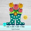 Spring Boots Flowers Layered DIGITAL SVG Cut File, Flower svg, Boots svg, Spring svg, Layered Paper svg, Paper Craft svg, Mother's Day svg