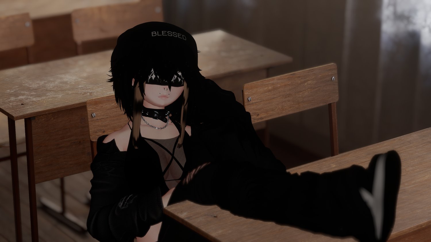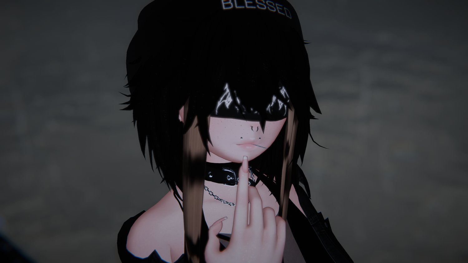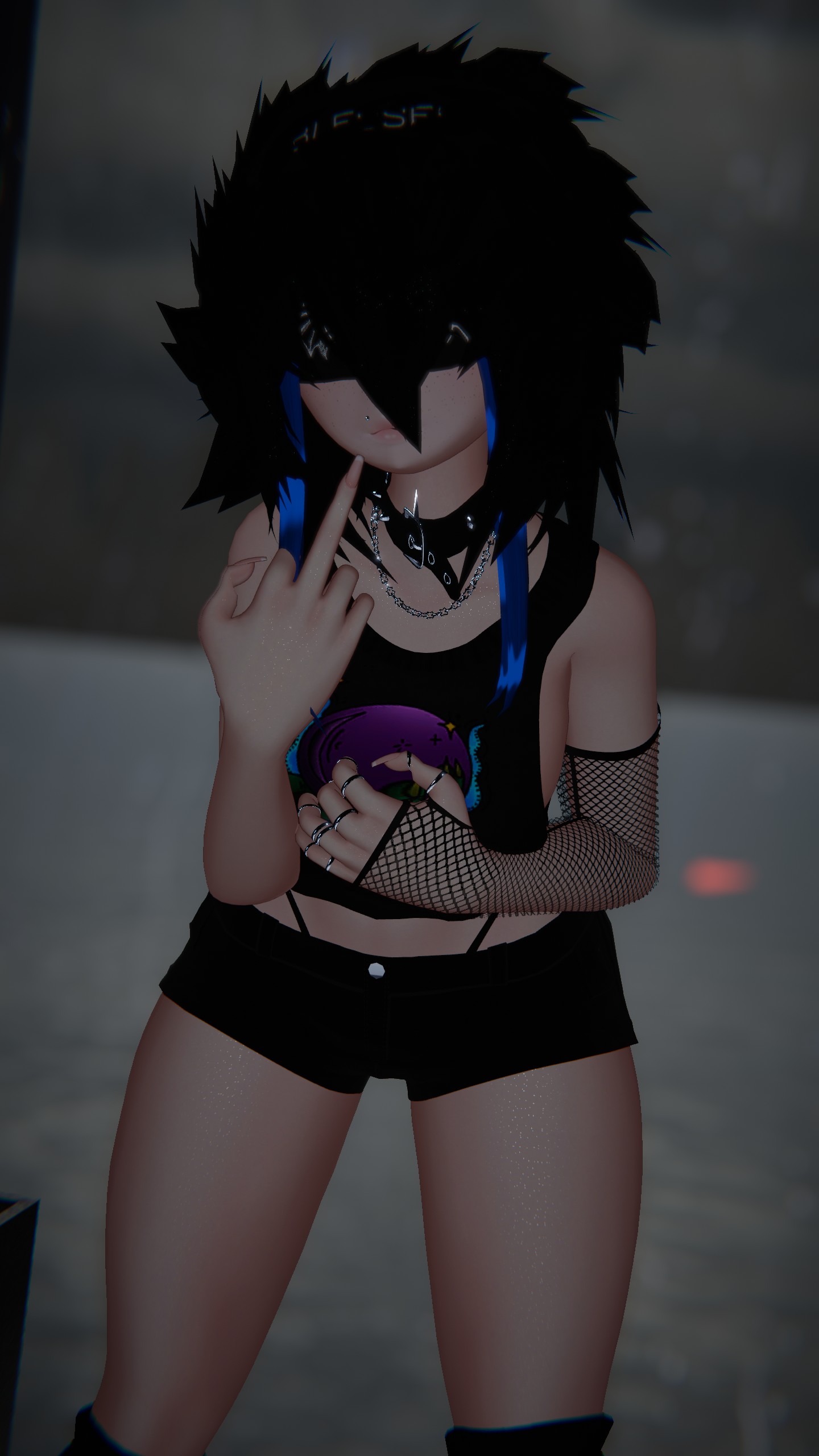 Accessories: Blindfold by Vutha, Angel Fangs by Bun, Piercings by 3amsnack, Beanie by byluny, Choker and Necklace by soso, Razor Blade by MoBubbler, Fishnet by Yan, Belly piercing by Skulli, Rings by Daddyissuez