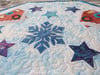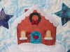 Here's a table topper sure to brighten up your Winter home! This topper features 3 Gingerbread Houses, Stars, a Center Snowflake, tiny button doorknobs and a sprinkling of sparkly crystals throughout. Just look at the fun details on the gingerbread houses: a wreath with a bow, a heart on the door, snow on the roof, chimney, window ledges and in front of the house too.