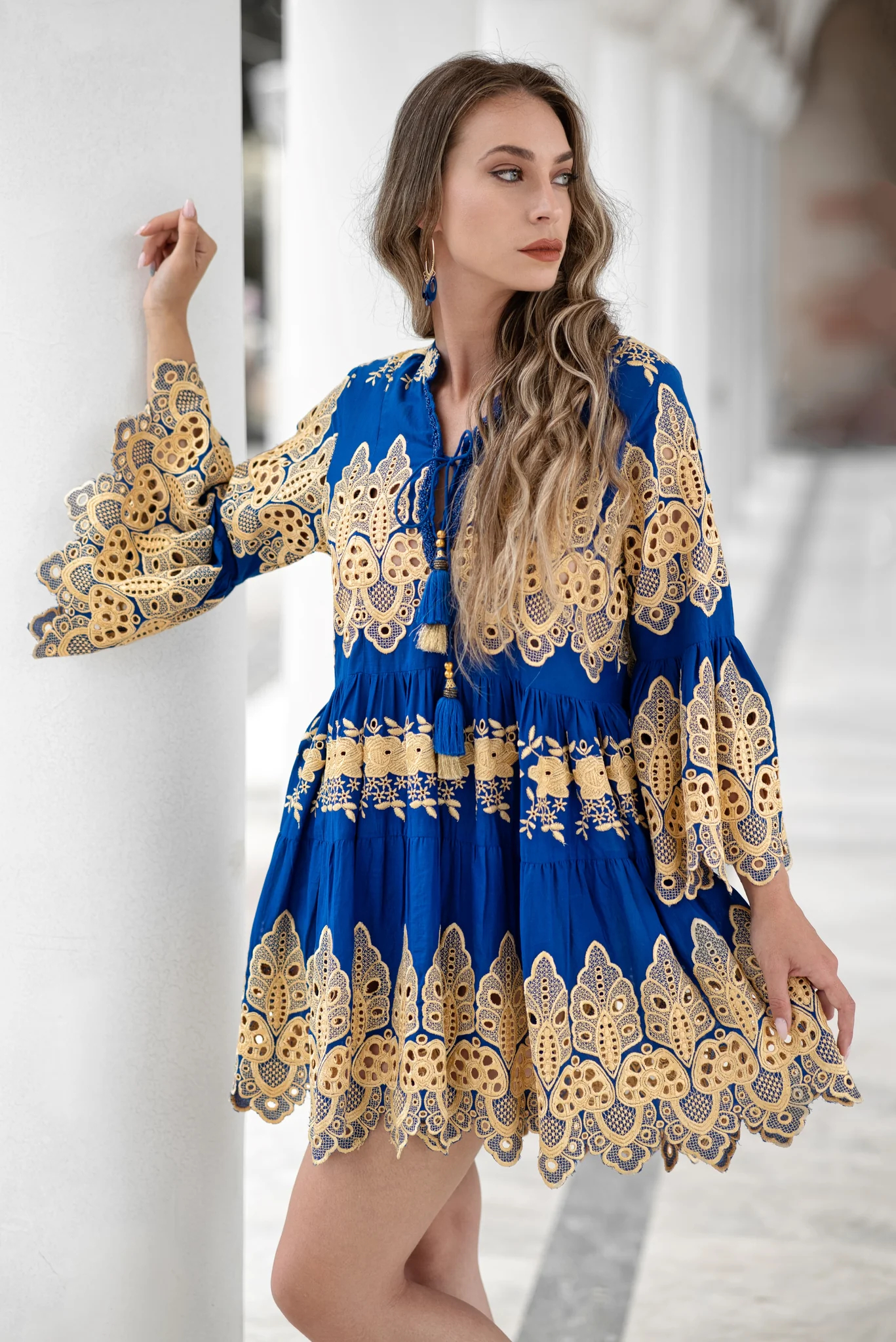 Golden threads dance on a sapphire sky, a summer dream in a breezy dress. ✨ #BohoStyle
