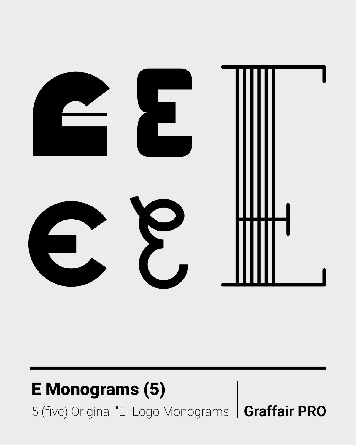 E Monograms (5): The 5th set of five original "E" logo monograms, selected from a total of 43, included in the "1050 SVG Monograms" super package, which also features an Index catalog.