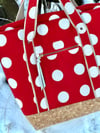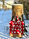 It has a good selection of not- too- difficult pockets, the straps have an extra detail and the whole lot comes together to make a very roomy and useful bag. I love mine for my art materials but it would be a great shopping companion too.