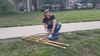 Pumping gas and crutching around