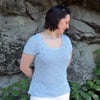 The tech edited and test knit pattern is fully written with a schematic. The pattern repeat is both written and charted. Construction: top down with side seams. The optional set in sleeves are top down as well.