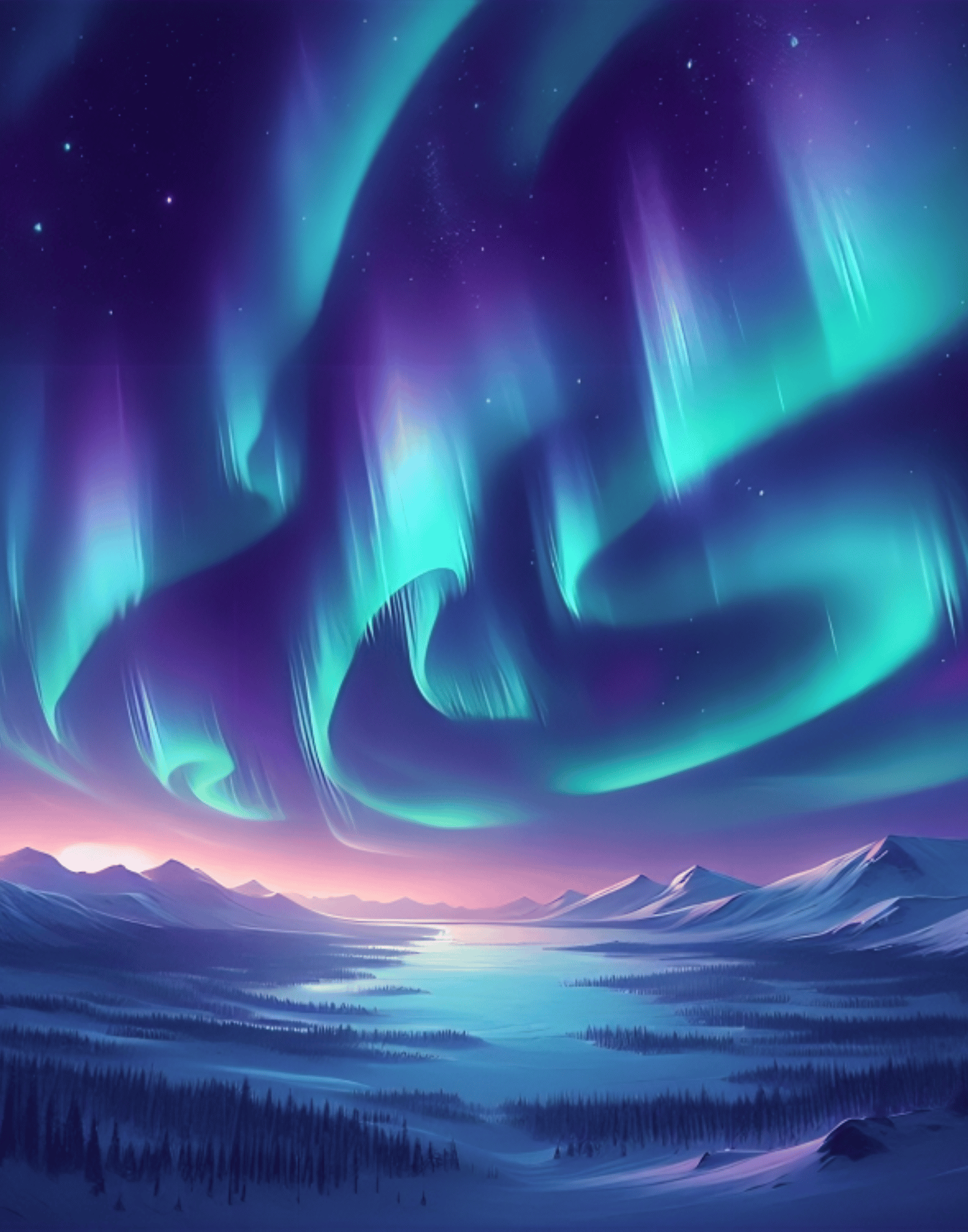 Northern Light, Sunset, Dusk, Snow Painting, Sonwy Forest Aura, Iceland, Frozen Landscape, Relaxing Nature, Amazing Nature Painting, Norway, Canada, Beautiful Nature, Light Explosion, Space, Highway, Modern Architecture,, Loneliness, Vintage Landscape, N