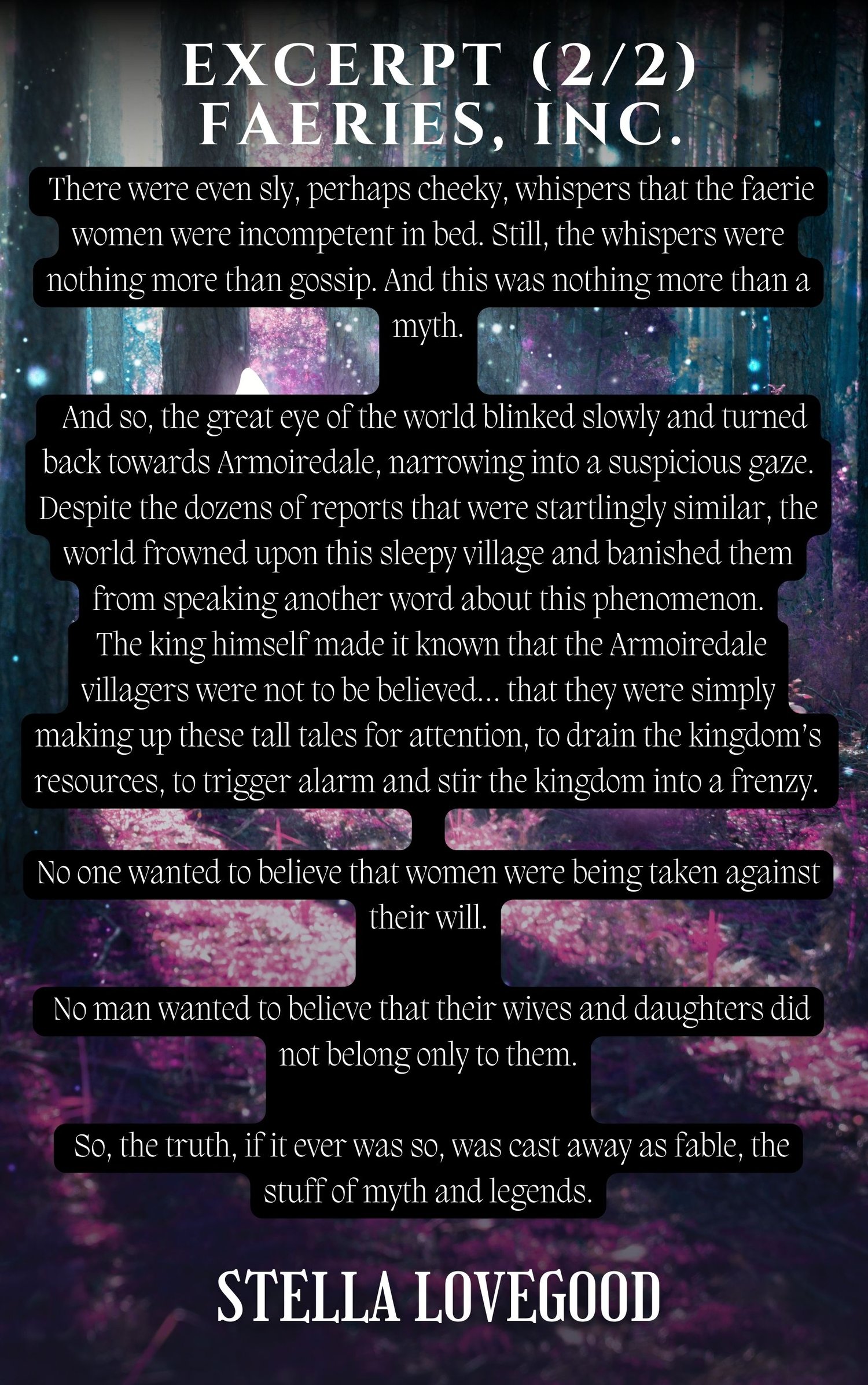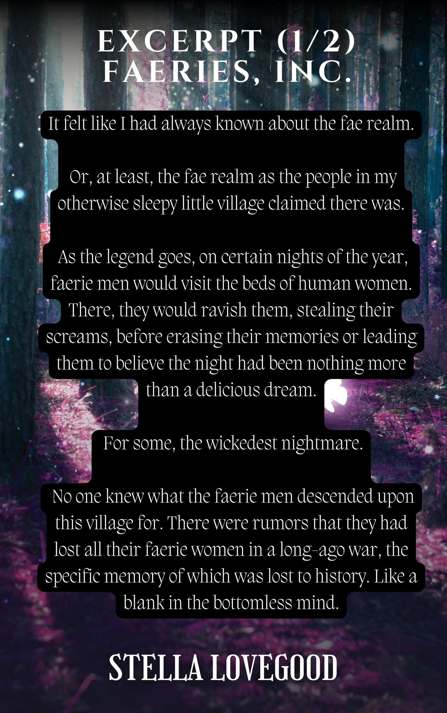 In the village of Armoiredale, on certain nights of the year, faerie men visit the beds of human women to steal their screams.