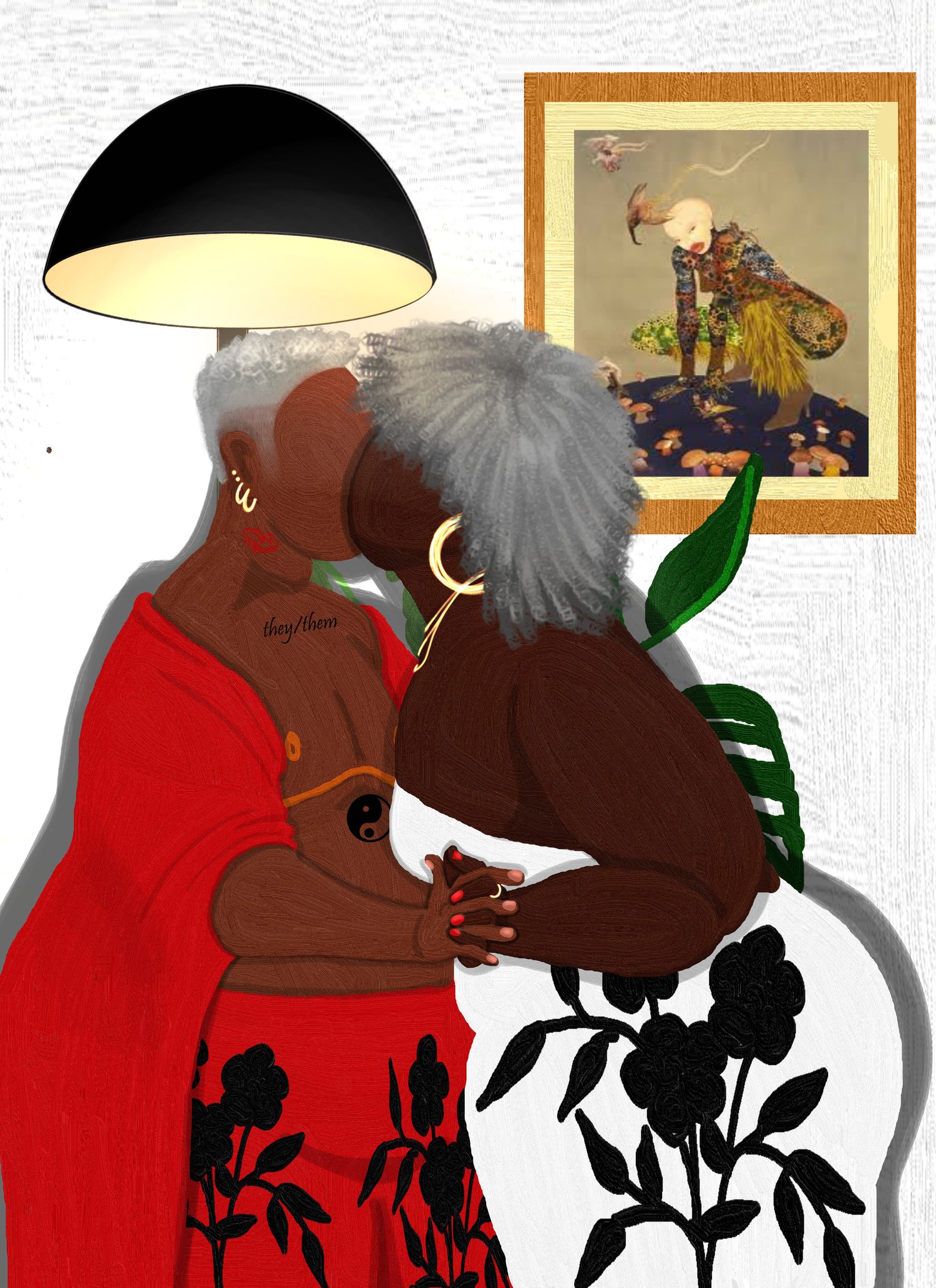 a digital illustration by Mercy Thokozane Minah inspired by the song 'Lipstick Lover' Janelle Monae from the album Age of Pleasure (2023).