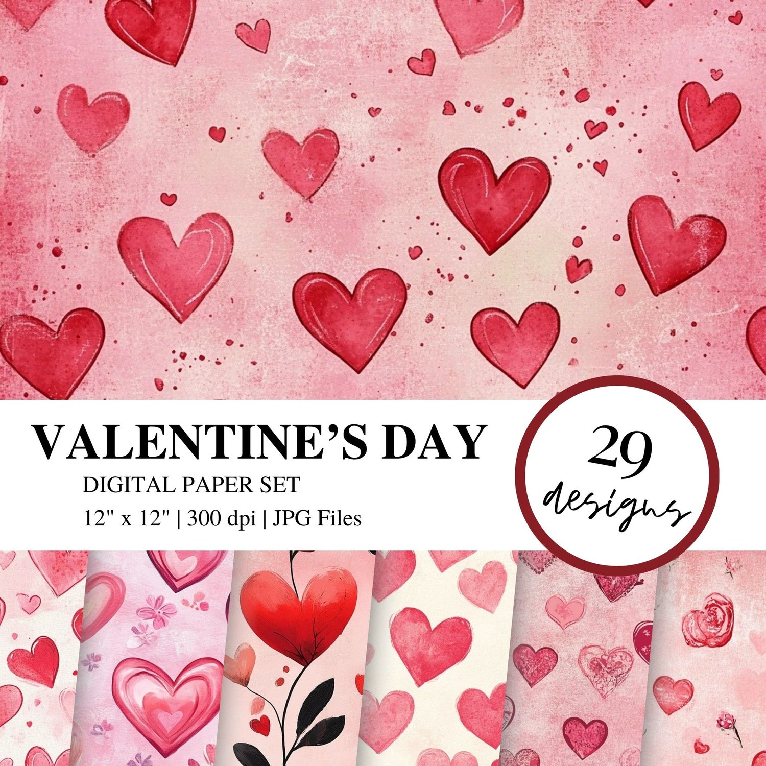 Celebrate love with this Valentine’s Day Digital Paper Set, featuring 29 unique designs with romantic heart patterns, soft pink and red tones, and beautiful textures. Perfect for DIY crafts, scrapbooking, and printable designs, these high-quality digital papers add charm and creativity to your Valentine’s Day projects. Whether you're making handmade cards, gift tags, or party decor, these designs are perfect for personal and small-business use.