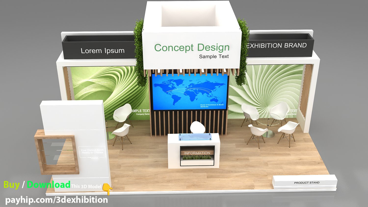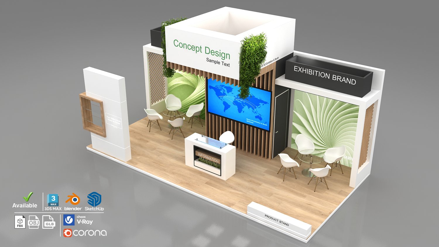 include design all necessary area in Exhibition and Booth Such as Vip and Storage and Counters and also Stand for products