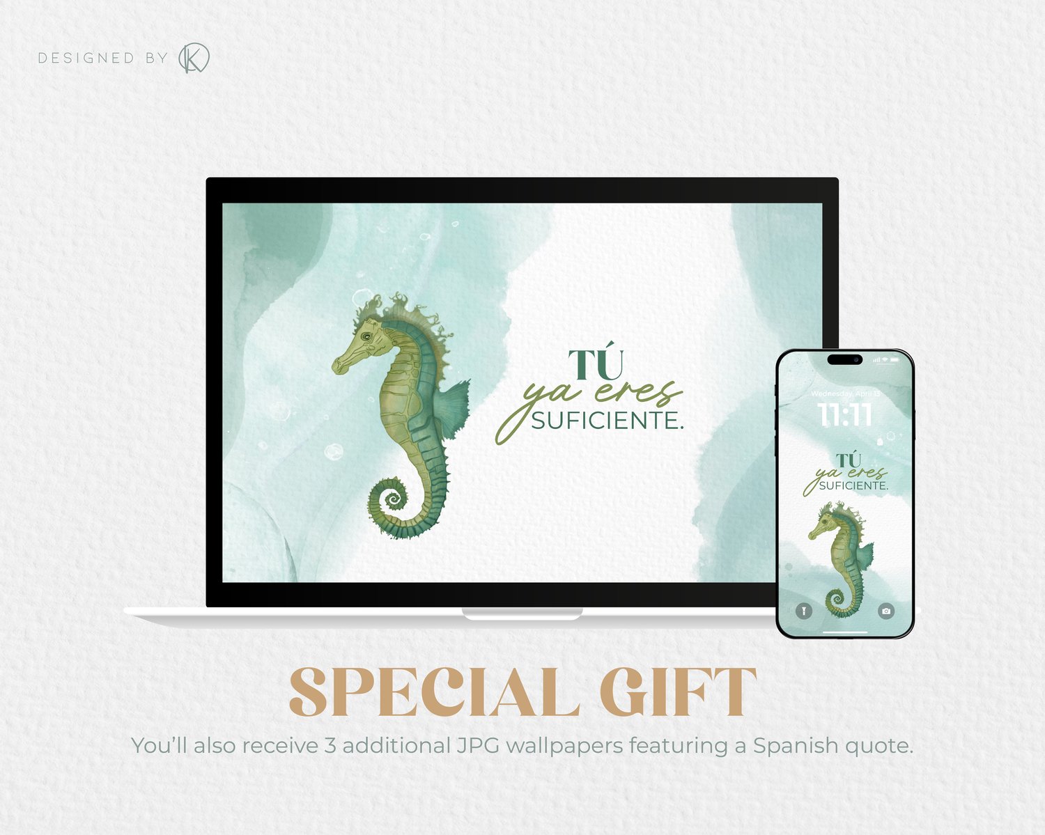 Esta colección de 8 fondos de pantalla fue creada con acuarela digital en Procreate, inspirada en animales marinos y la paz que me transmite el océano.