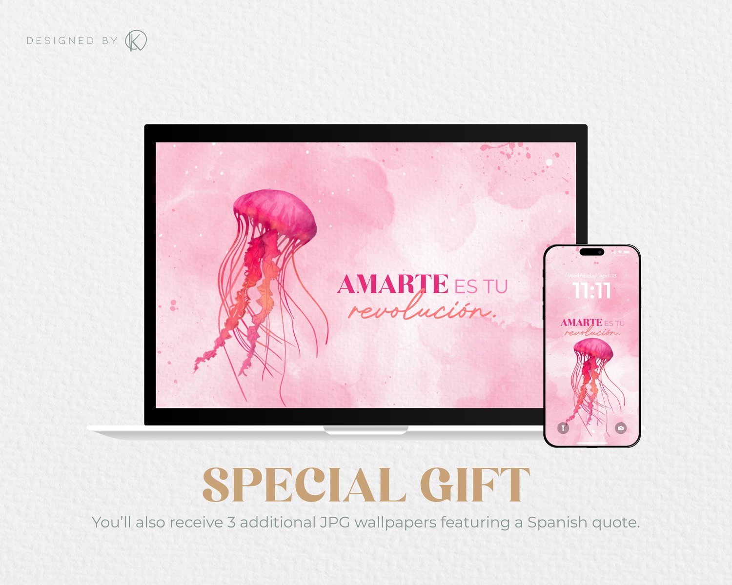 This 8-piece wallpaper collection was created using digital watercolor in Procreate, inspired by marine animals and the calm energy of the ocean.