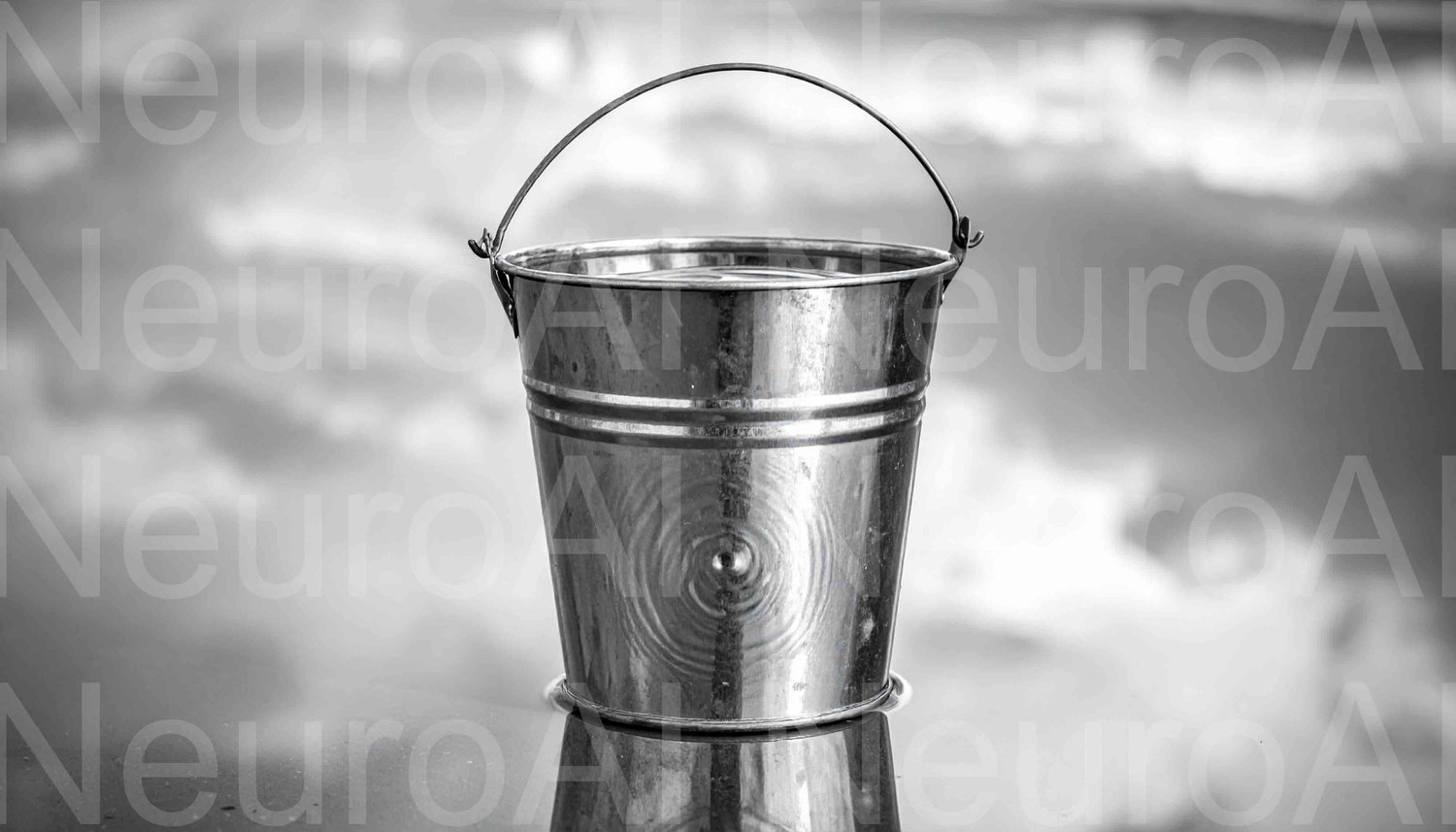 Mystical bucket reflects dreamy sky in monochrome