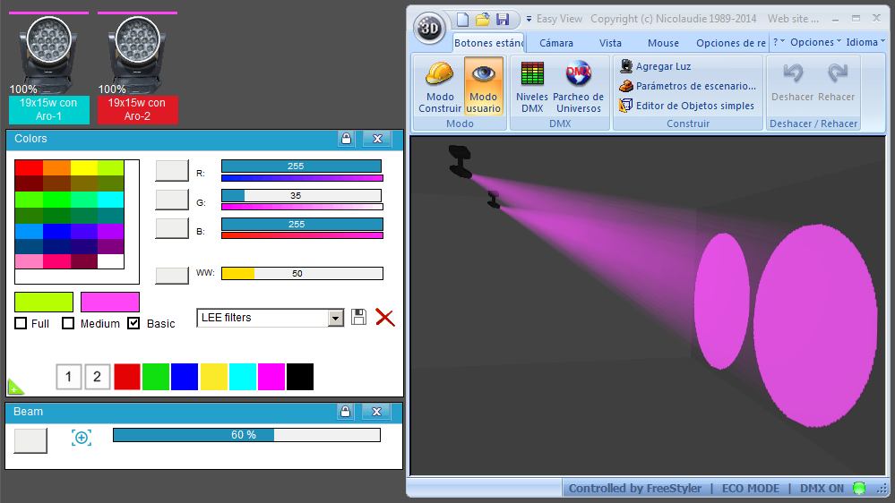 Esta Librería SSL2 está optimizada para trabajar con Magic 3d Easy View. Es decir para ver una representación 3D de las secuencias que estemos realizando con Freestyler, QLC+ o cualquier otro soft que se conecte con Magic 3d.