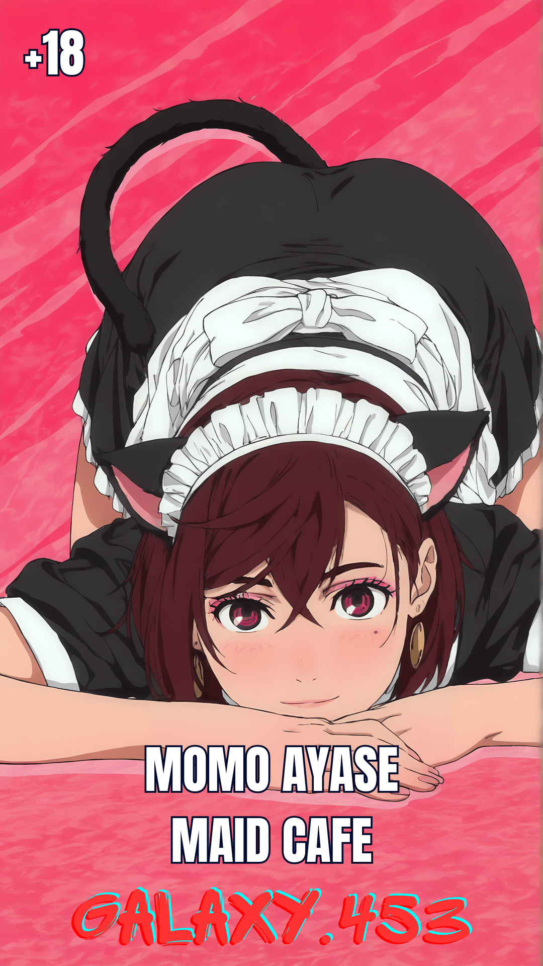 This image set features Momo Ayase dressed as a maid café girl, enjoying a lighthearted and playful day filled with personality and style.