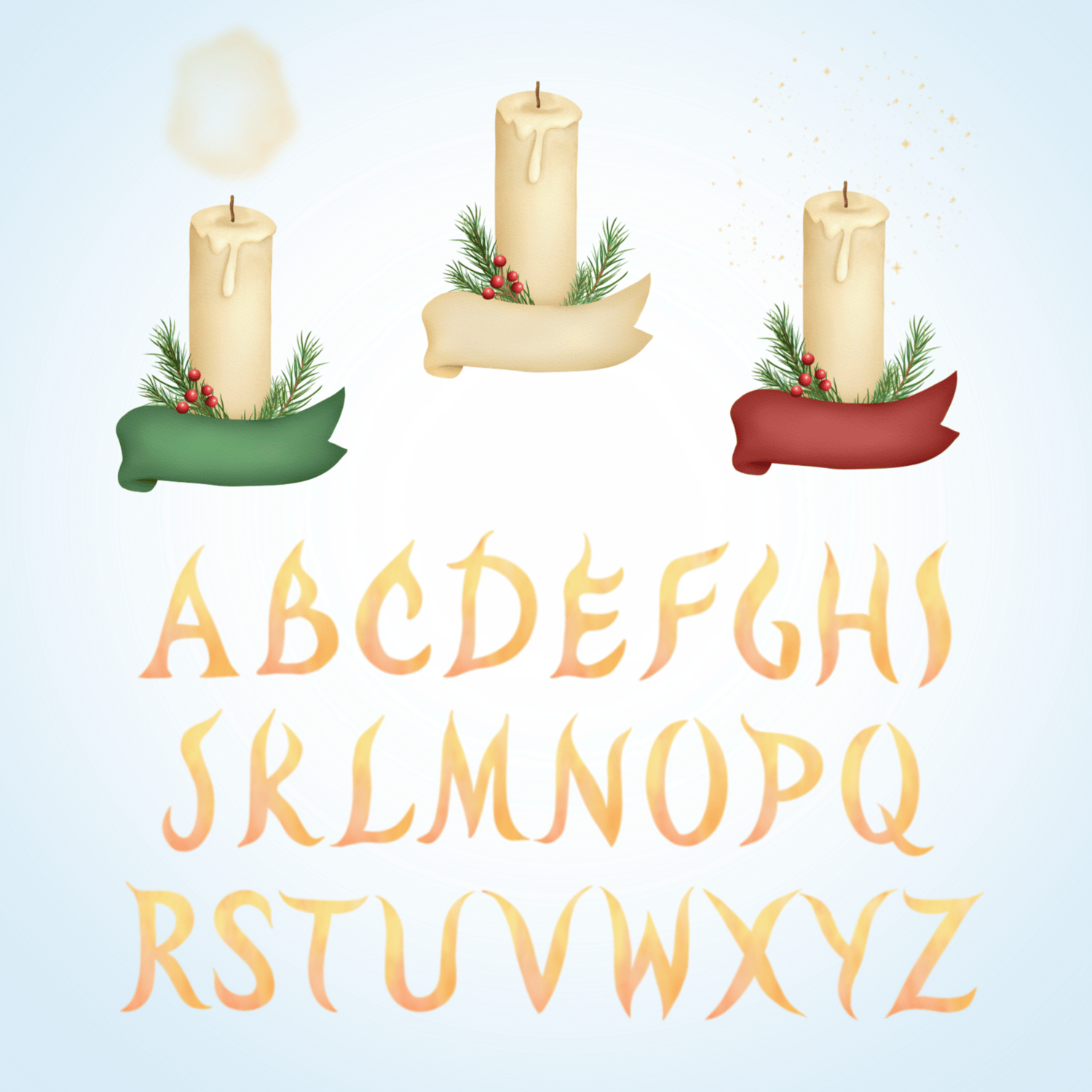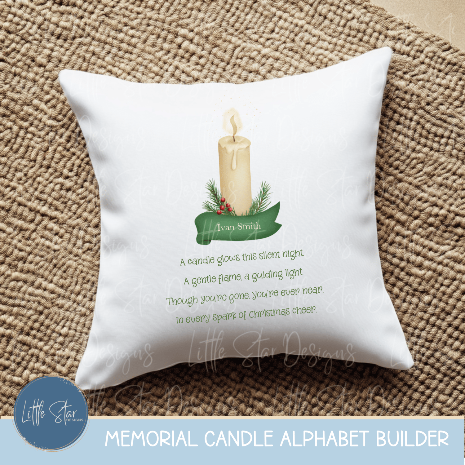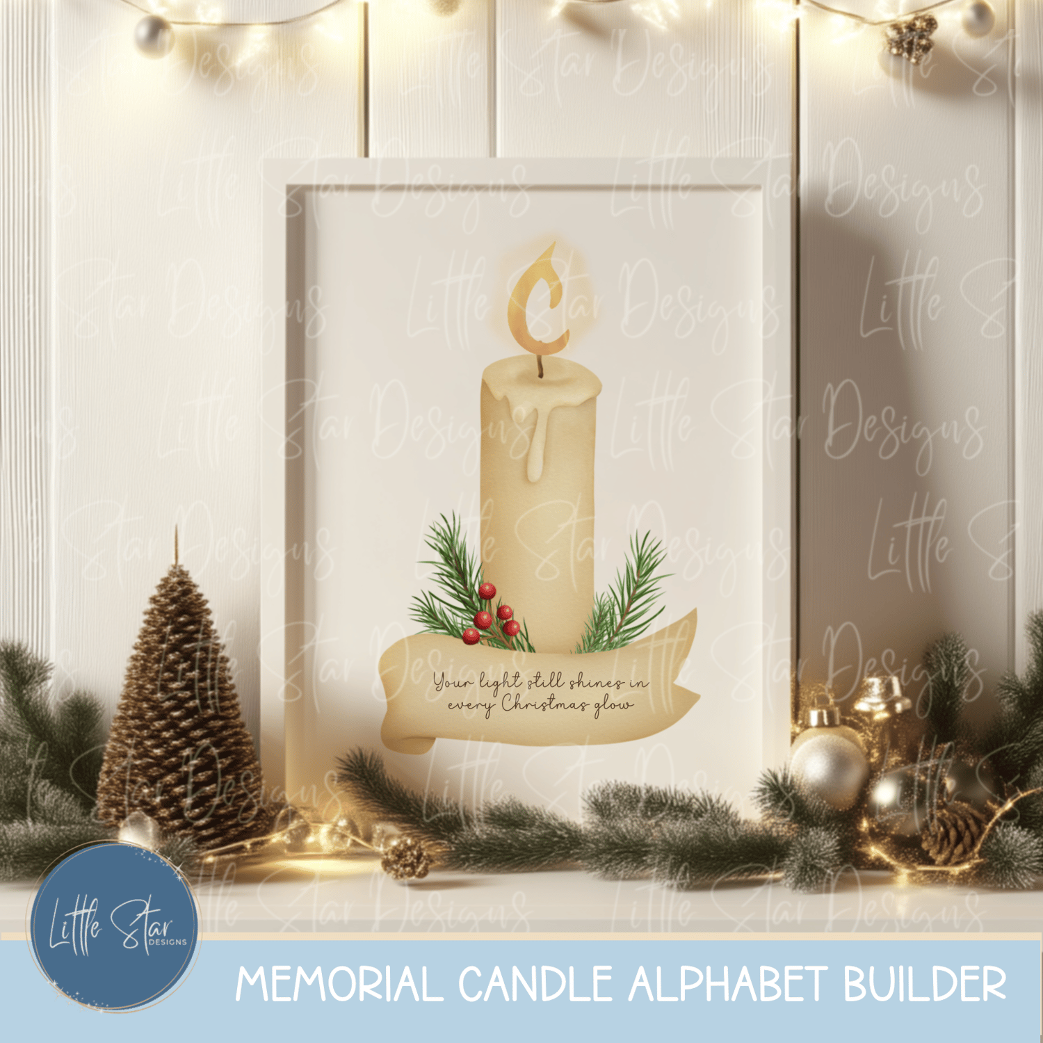 This is a high-quality hand drawn (300dpi PNG) clipart set digital download of my original artwork, titled “Memorial Candle Alphabet Builder ”designed for sublimation and print.