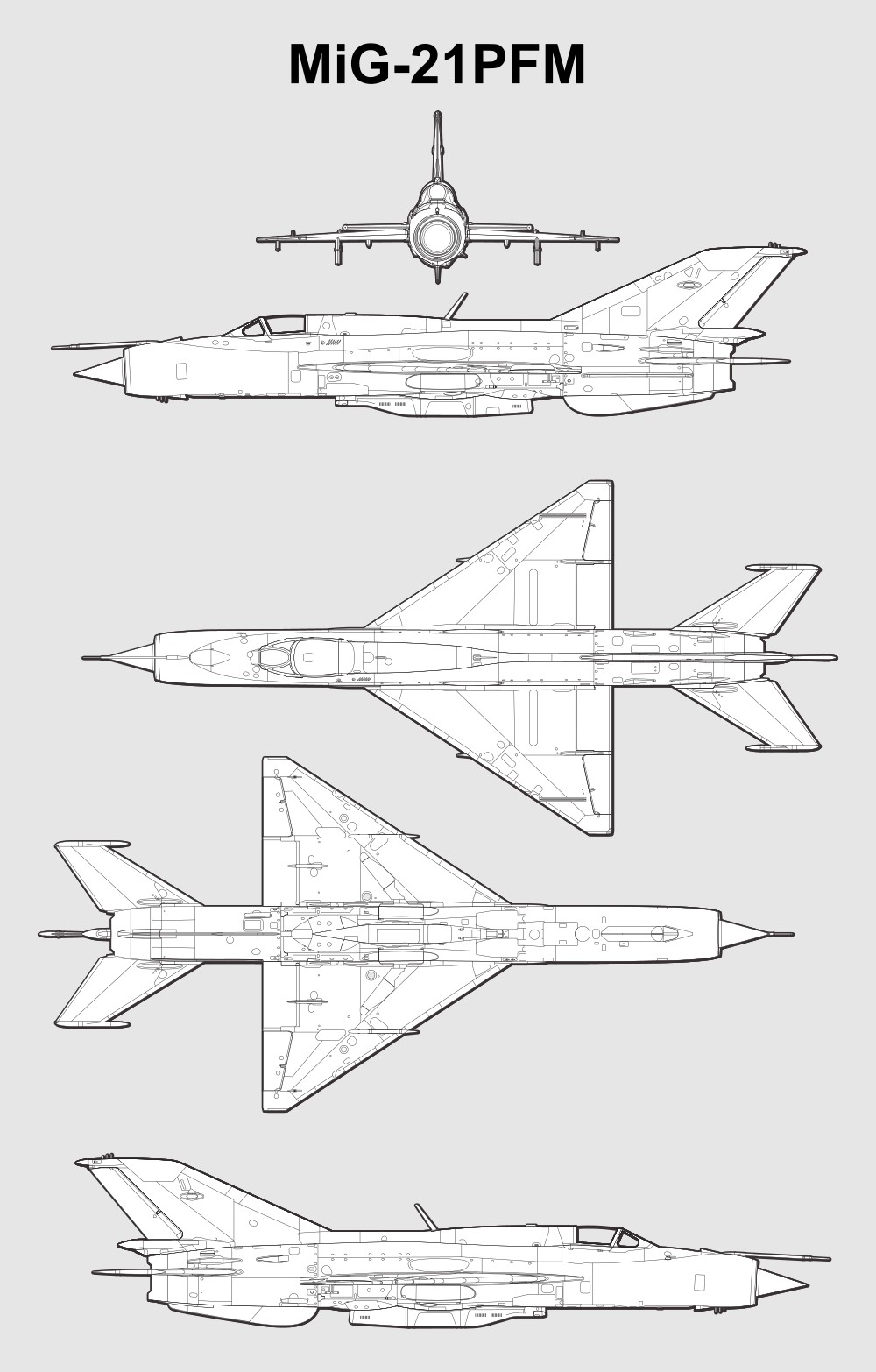 MiG-21PFM Blueprint PDF SVG Vector Drawing.