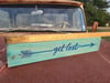 Inspire or tell your guests to get on their journey with this tasteful and trendy arrow sign! Hand stenciled and lettered, this is a one of a kind item your guests will surely envy! Turquoise blue this sign is a tad over 20 inches.