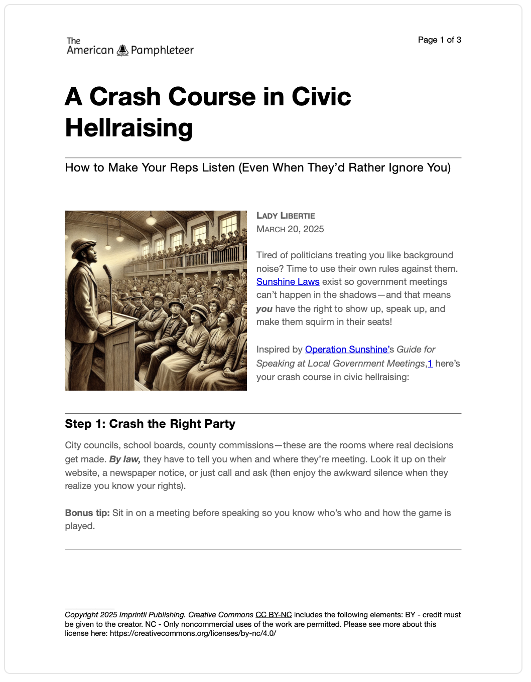 Inspired by Operation Sunshine’s Guide for Speaking at Local Government Meetings, here’s your crash course in civic hellraising: