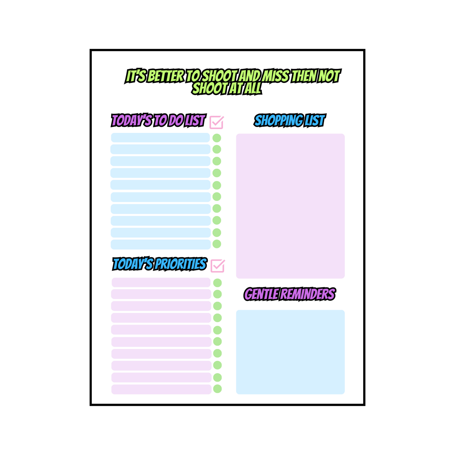 Daily Planner with Motivational Quotes. Using light but bright colours, this Daily Planner is hard to miss and can be used for all the family. In order to create the life we want, we need to first make a start. Starting is made easier with motivation. What better way to start your day then with a motivational quote to keep you inspired, on top of an easily accessible list of your daily tasks.