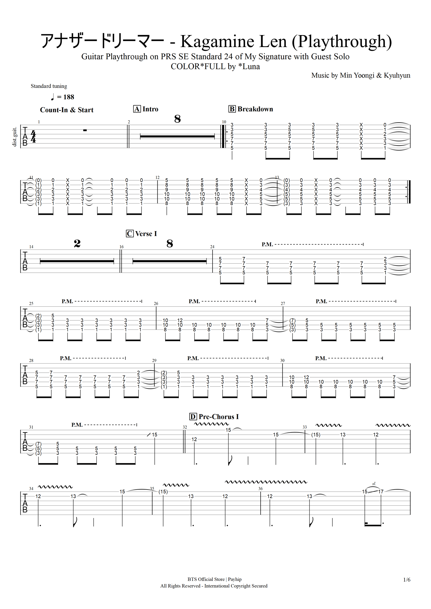 *Luna - アナザードリーマー [ft. 鏡音レン] (Guitar Playthrough TAB) + Digital MP3 192kbps