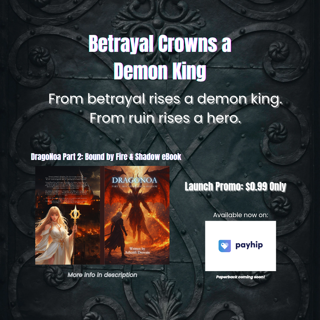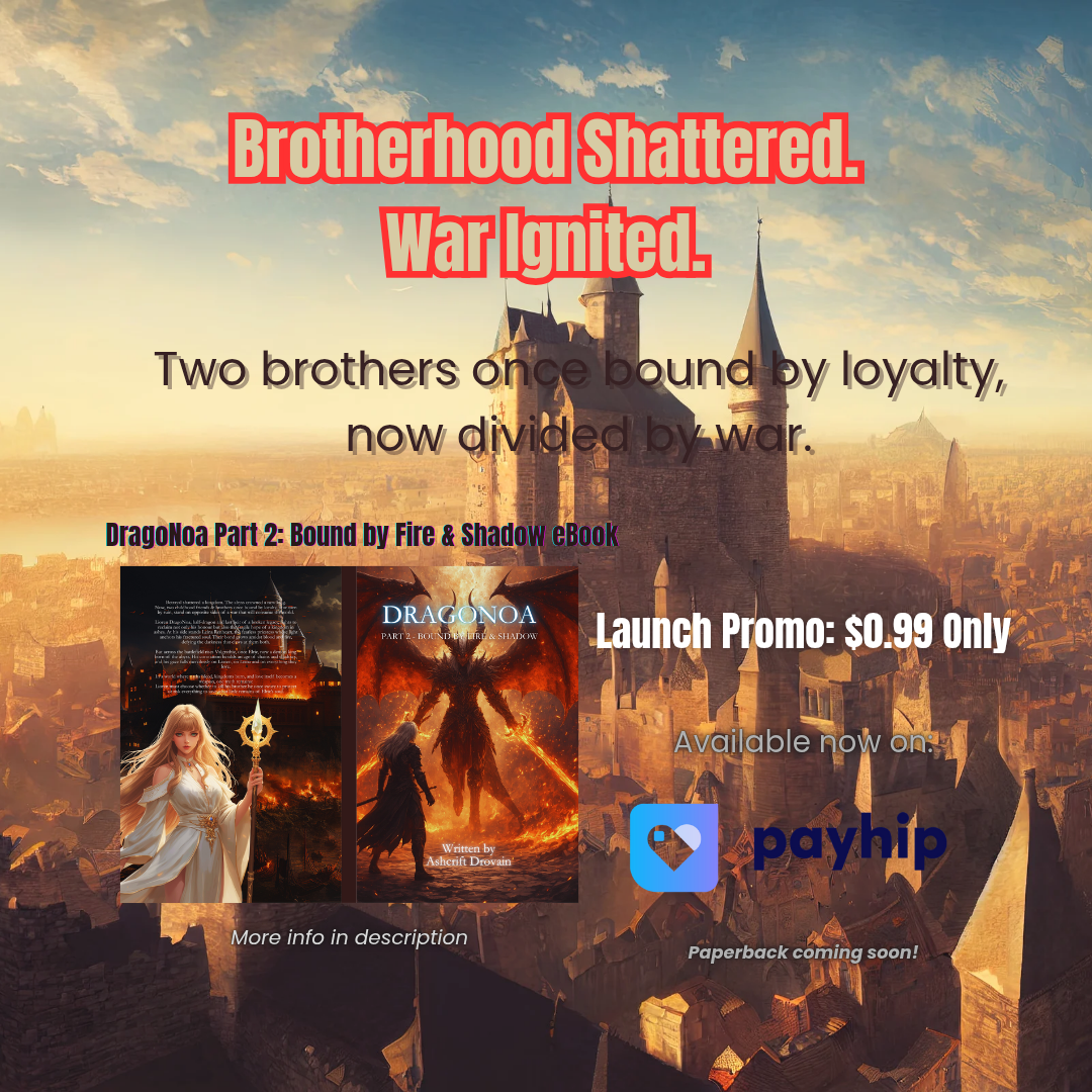 Step into the world of DragoNoa Part Two: Bound by Fire & Shadow, the epic continuation of the fantasy saga where dragons, brotherhood, and betrayal collide.