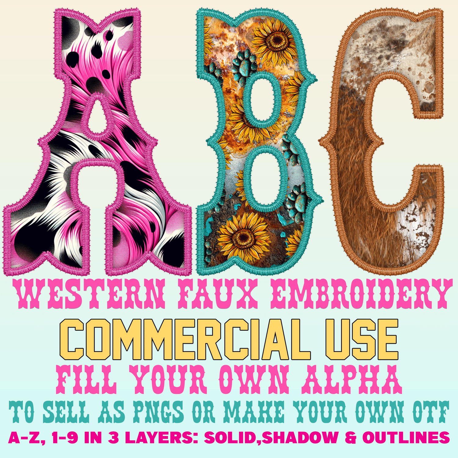 DIY Western Font Faux Embroidery Alphabet, Commercial Use Create + Sell Alphabets