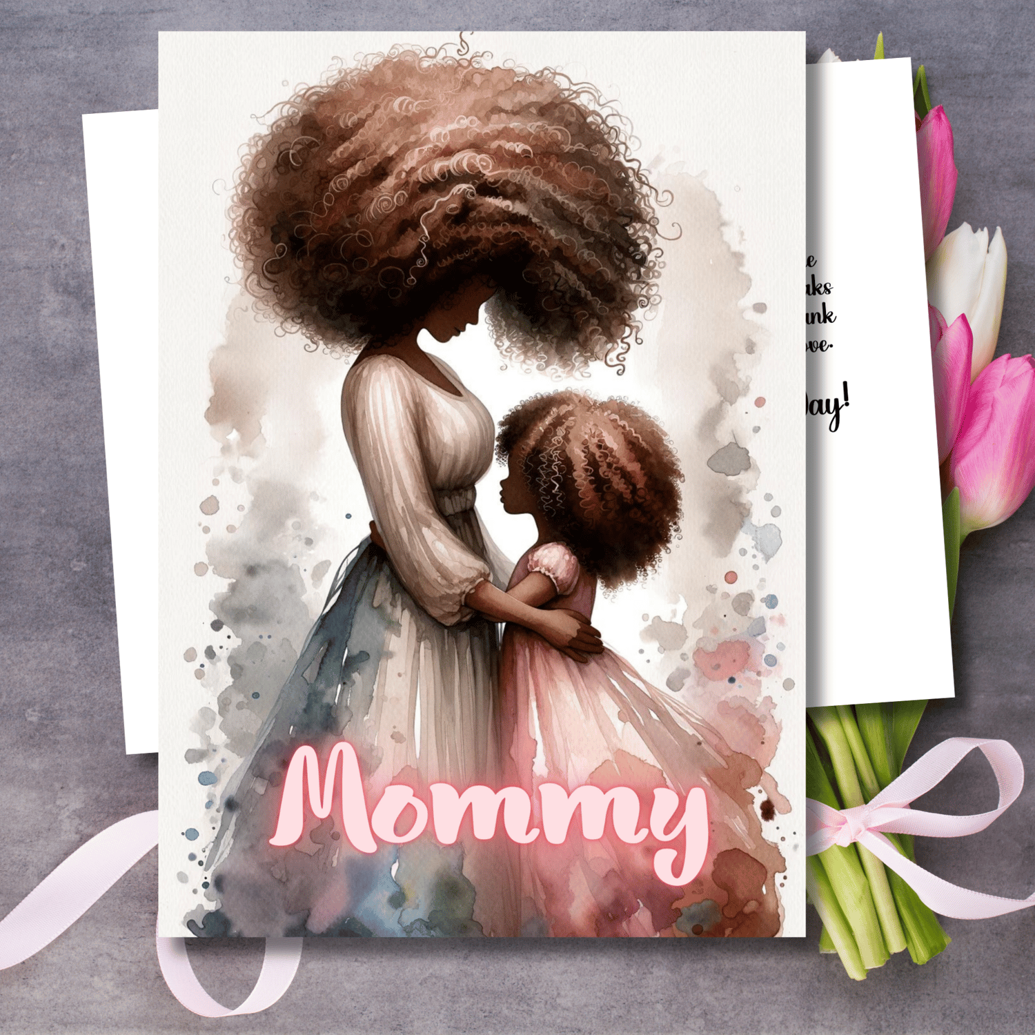 💐Mommy Mother's Day Card, handmade greeting card. African American greeting card.